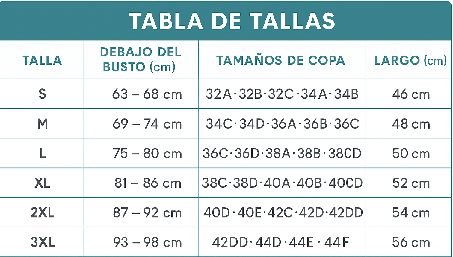 Solo mide tu cintura y revisa nuestra tabla de tallas en centímetros. Si dudas entre dos tallas, pide la más grande para mayor comodidad.