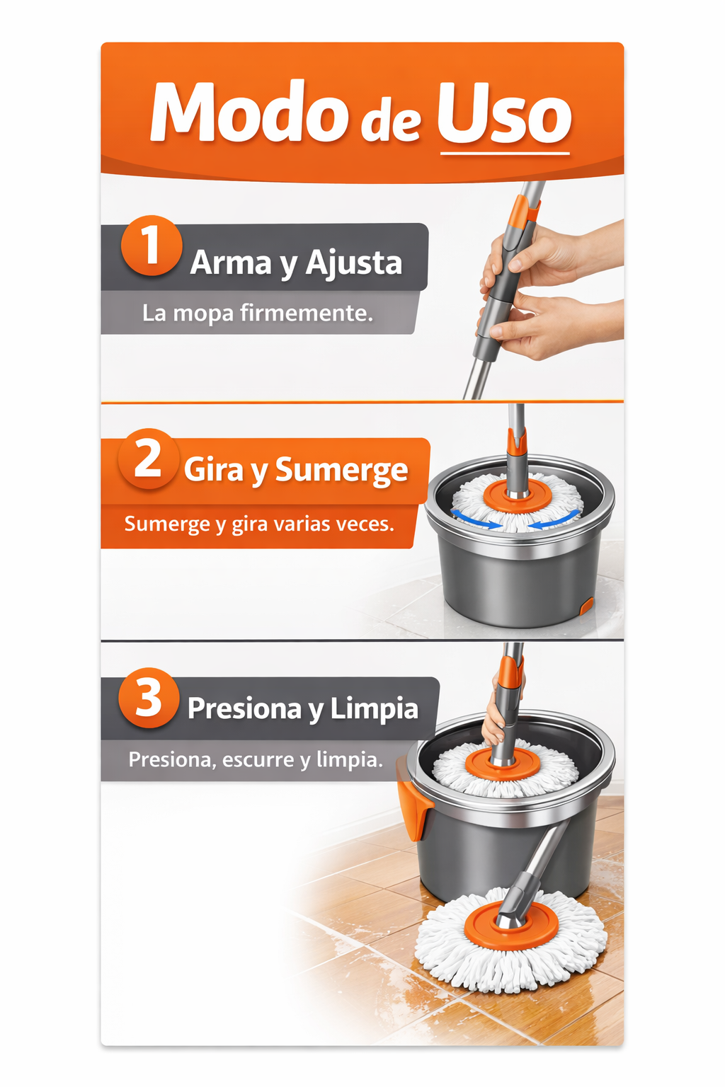 Limpias más rápido, sin agacharte ni mojarte las manos.
