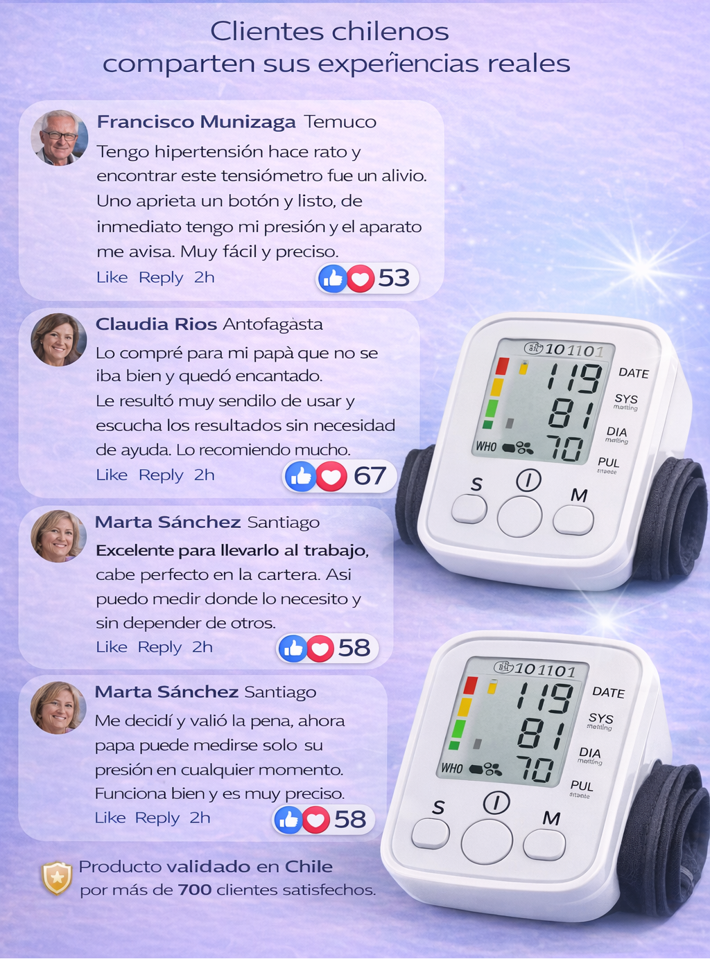Monitorea tu presión y oxígeno de forma simple, rápida y sin depender de terceros.